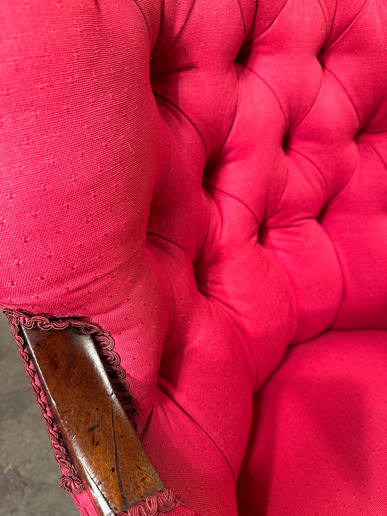 Inject glamour & colour into any setting with this fabulous chair. We love the upholstery/fabric vibrant red/ pink the perfect fireside country house armchair.