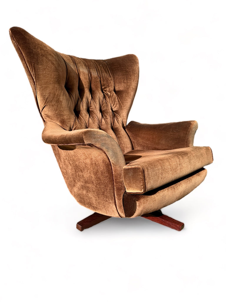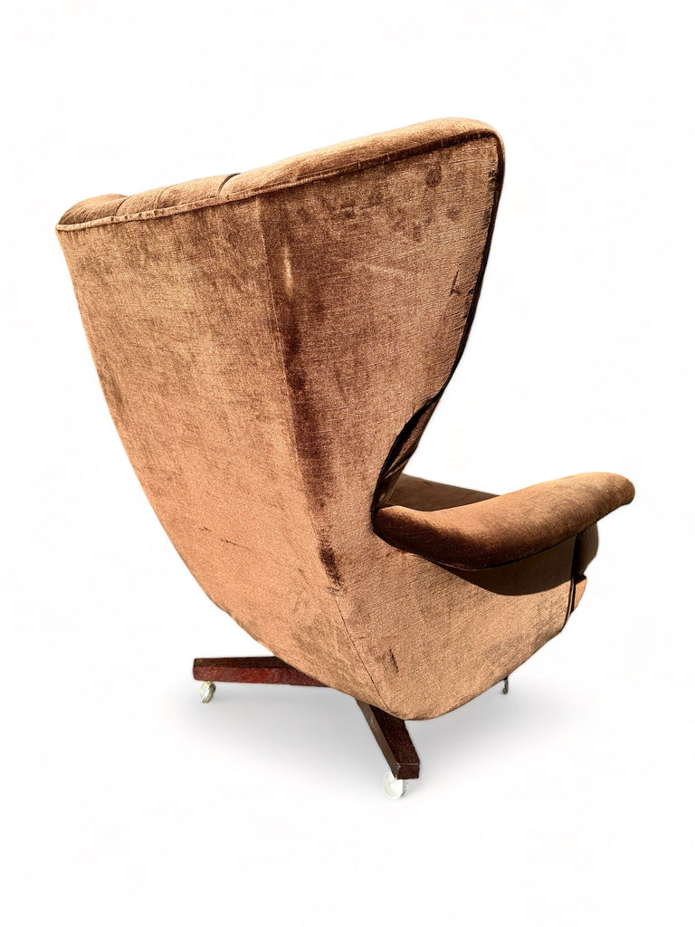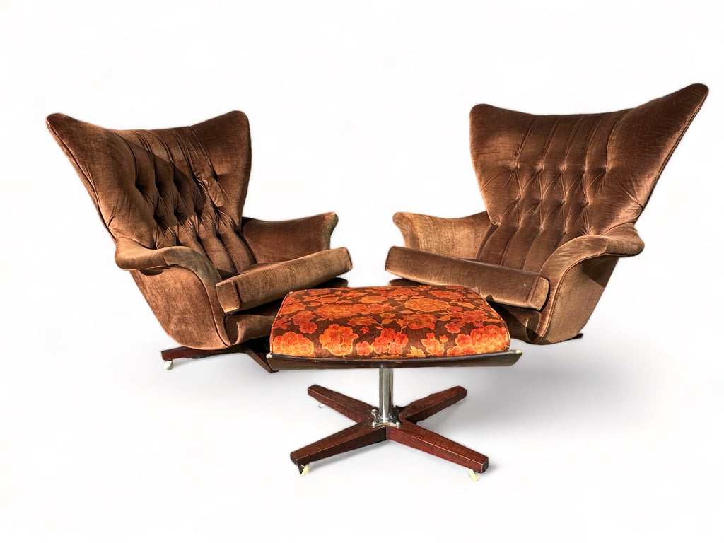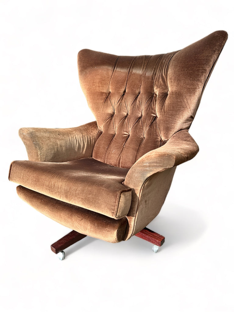 Original velvet upholstery ultra comfortable 1960's G -Plan 6250 swivel and rare matching rosewood footstool. Circa 1962