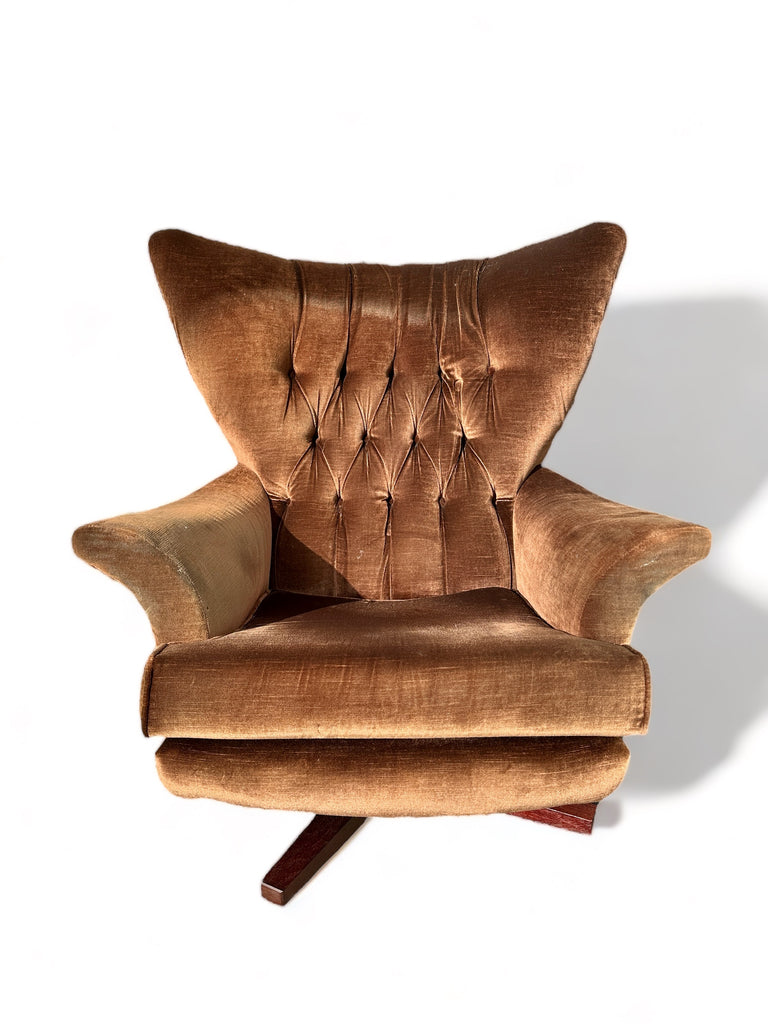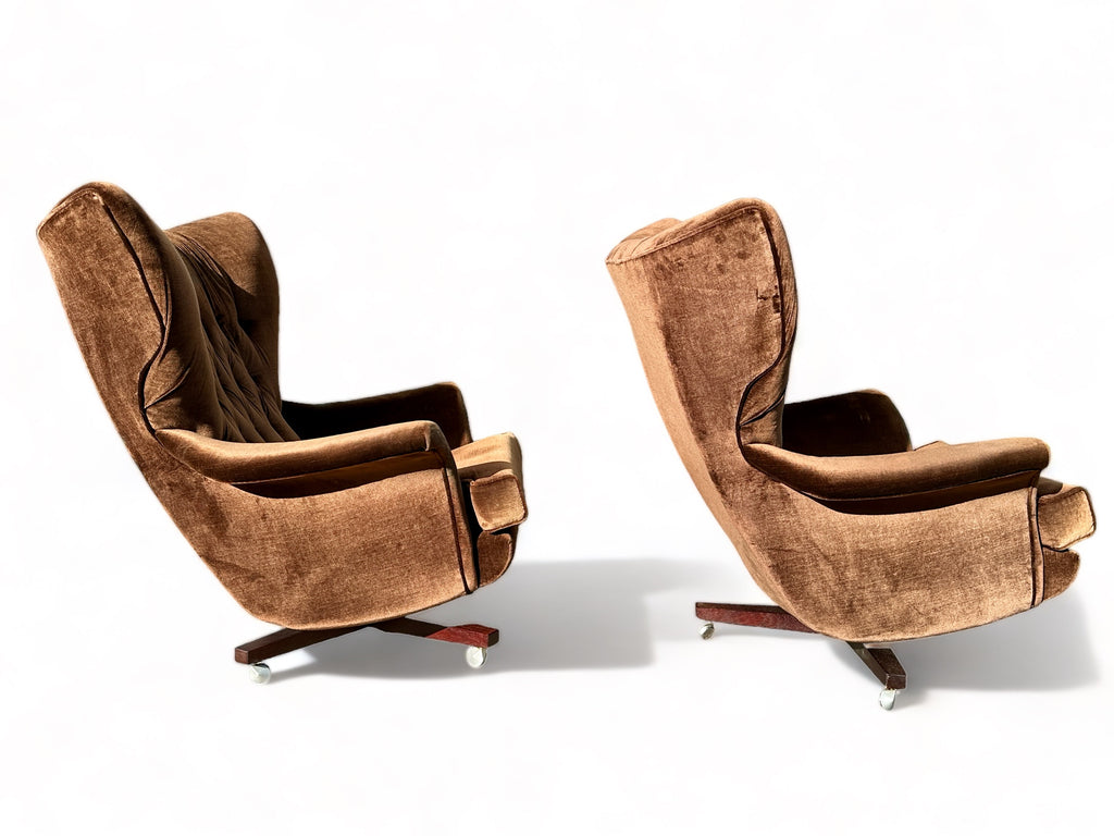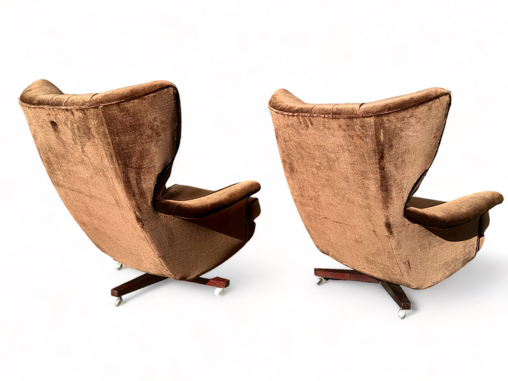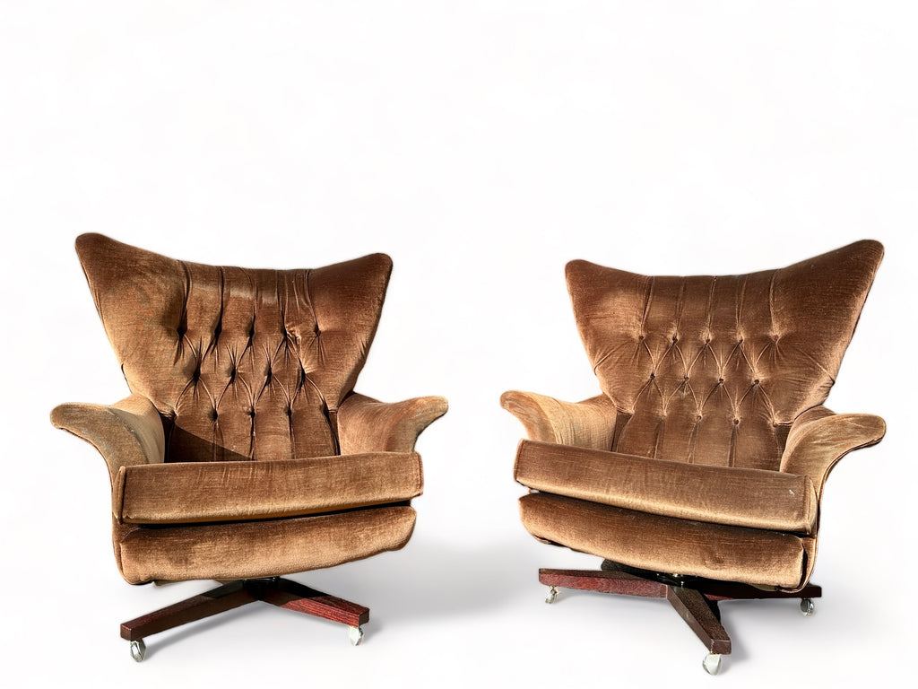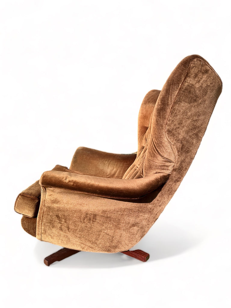 Original velvet upholstery ultra comfortable 1960's G -Plan 6250 swivel and rare matching rosewood footstool. Circa 1962